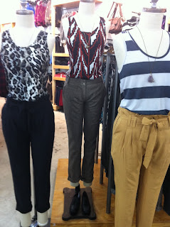I love this display of mannequins. I love the mustard, tie-up trousers on the right paired with this sailor-striped shirt.