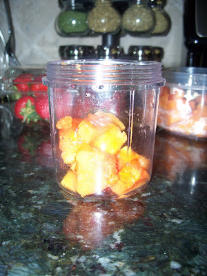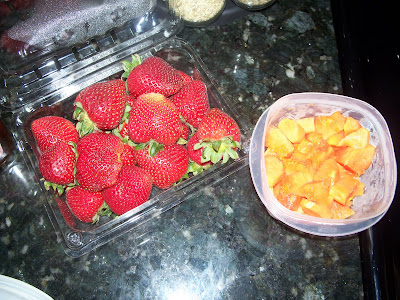 On my honeymoon, I had this papaya smoothie that was pretty good. I won’t say it was the best ever, but it satisfied the urge for something healthy. So as I was grocery shopping yesterday, I came across some papaya in the produce section and decided to buy. Mind you, I’ve never bought papayas before, but I love trying new things. Last night I chopped the papaya into chunks and put it in the fridge overnight.