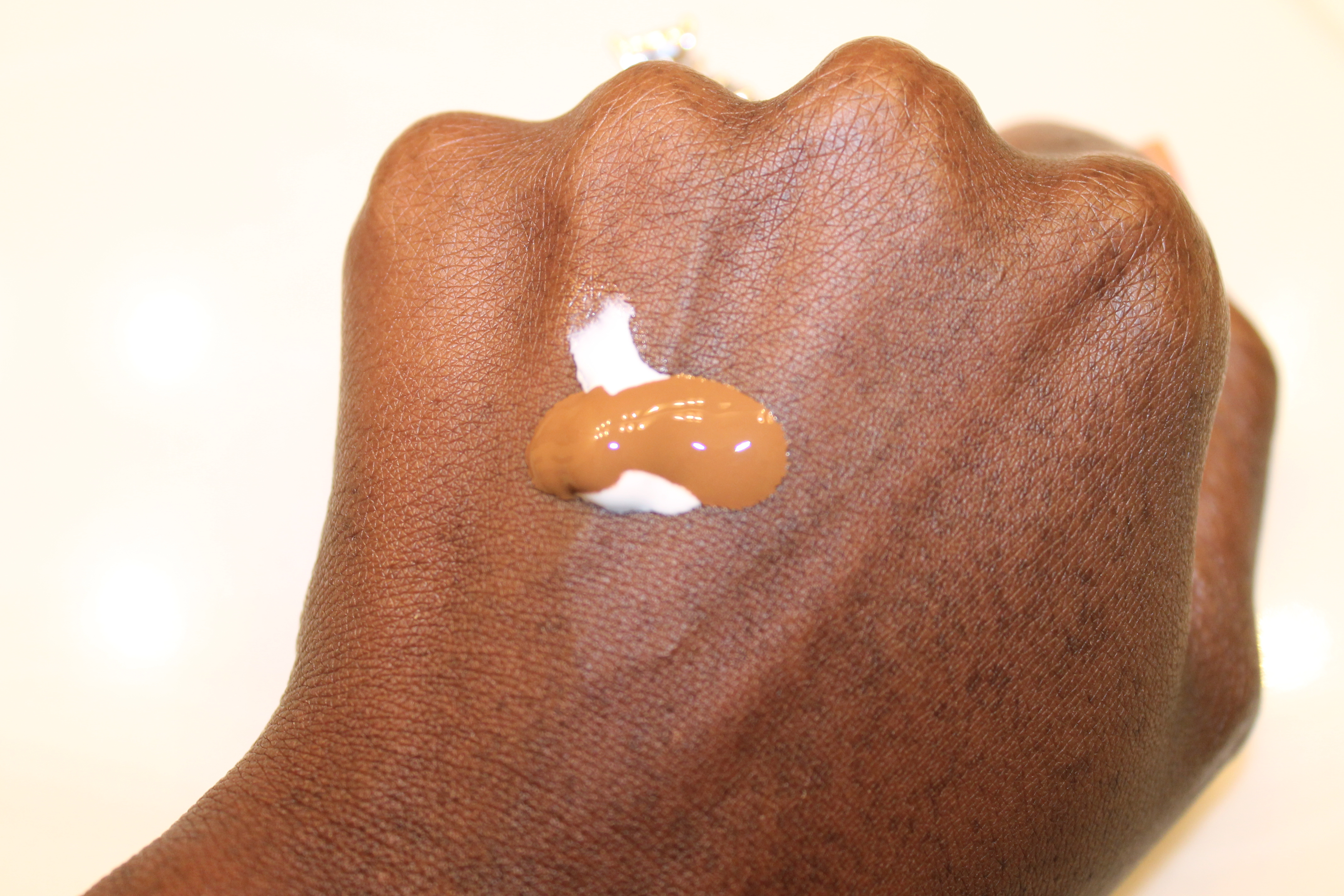 I took the moisturizer of choice and foundation and created my own tinted moisturizer. I apply to the back of my hand, like so, to warm up the product, mix them together, and apply with my finger. Now, most may prefer a brush or sponge, but in this case I treat it like a moisturizer and apply with my middle and ring fingers – with clean hands, of course.