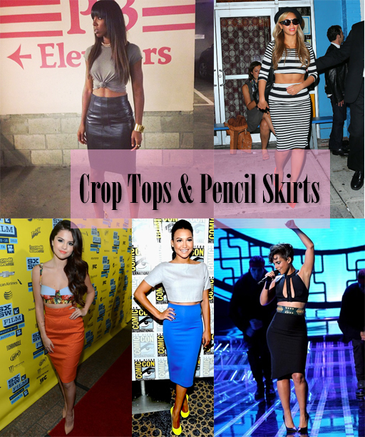 1. Obviously by the title you know that pairing a crop with a pencil skirt is the way to go. For this trend to work, it’s best to wear a high-waisted skirt .