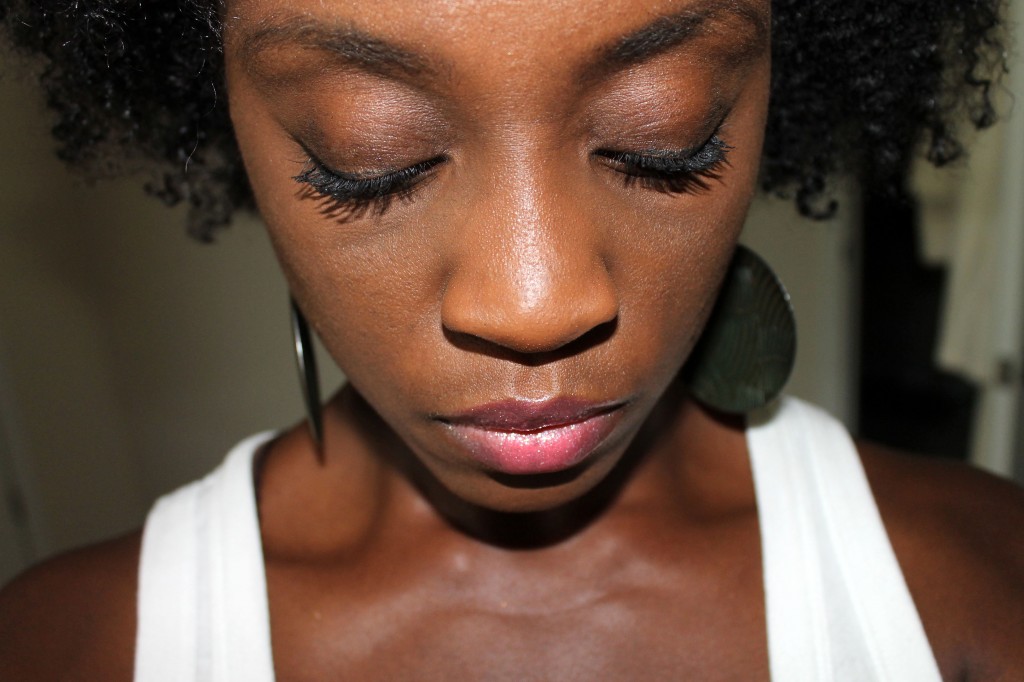 Before I continue, let me admit: I h.a.t.e. false eyelashes. Hate. Please don’t ask me to wear them! You will only find me wearing lashes during a performance, and that’s if it’s extremely necessary (and I’ll still try to make a way to get out of wearing them). I wore some for my birthday this year and ripped them off by the end of the night. My eyelashes paired with the right mascara gives me full, sky-high lashes I crave, which doesn’t require glue, tape, or whatever else people use to torture make themselves look beautiful. *Smile*