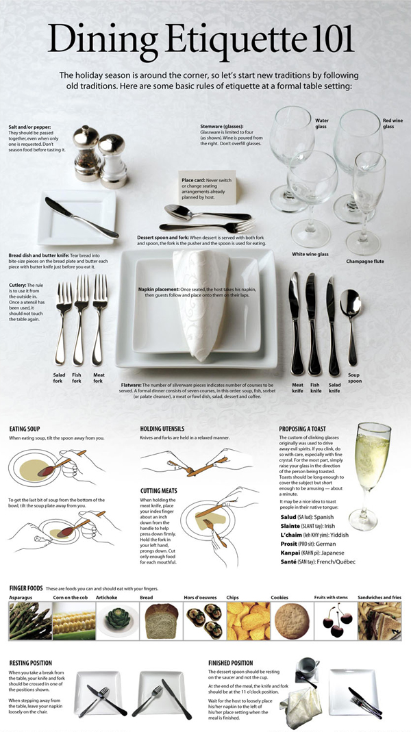 I came across this graphic that gives a fantastic overview of dining etiquette and what better way to share this with you than right before we celebrate a holiday of thanks!