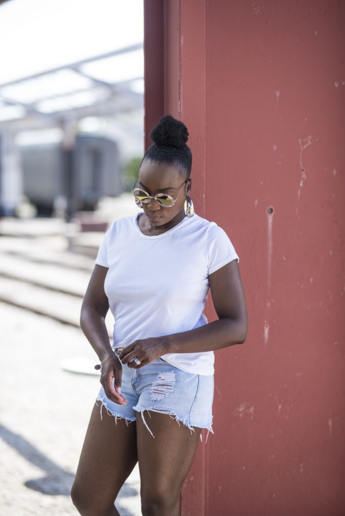 Tee: Gap Basics Tee {Similar one here} Shorts: F21 Distressed Denim Necklace: Stella & Dot Engravable Necklace Shoes: Chuck Taylor Classics