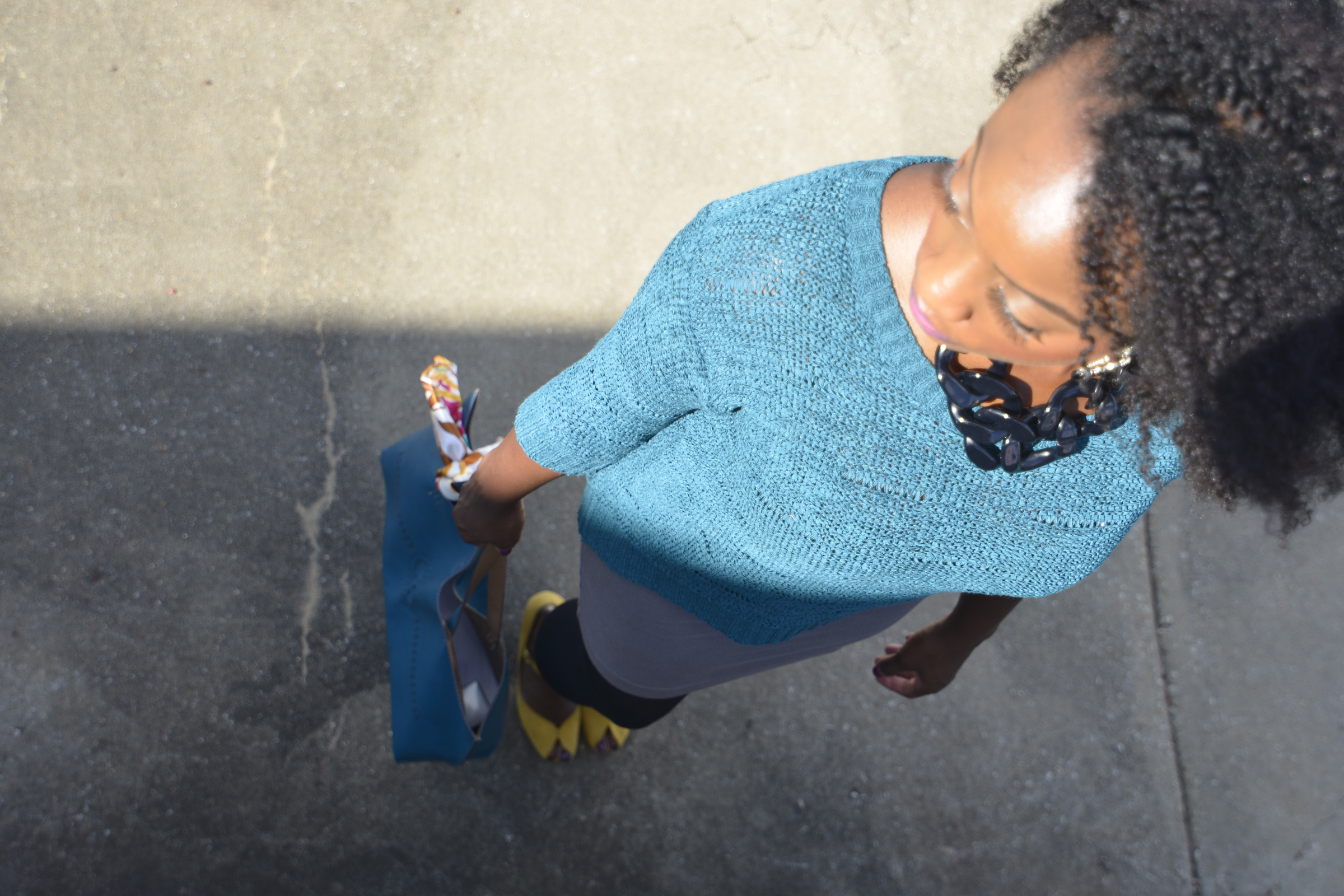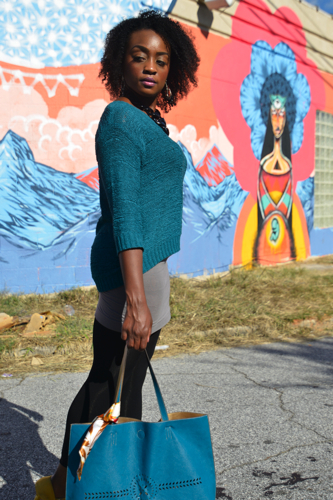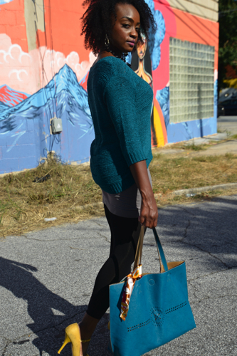 Out of the all the times in the year, colors in the fall seem to be the most vibrant, prettiest, and truest in form. So when the fall weather decided to show up in Atlanta (thank goodness), it was only natural to pull out a knitted number, cool enough in its own right, to keep me warm. When temperatures are cooler, I immediately go for layers galore, tights, and of course, color!