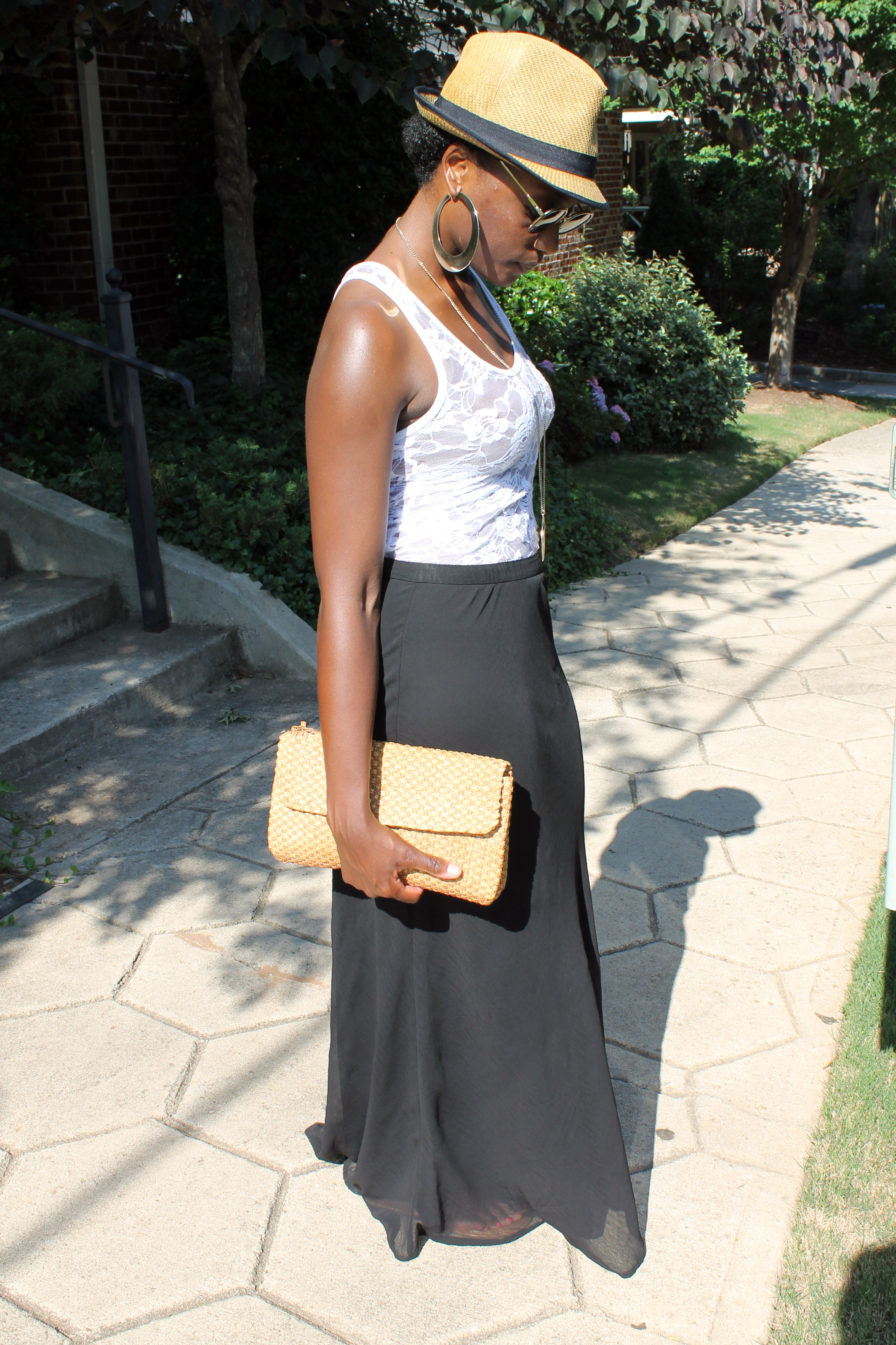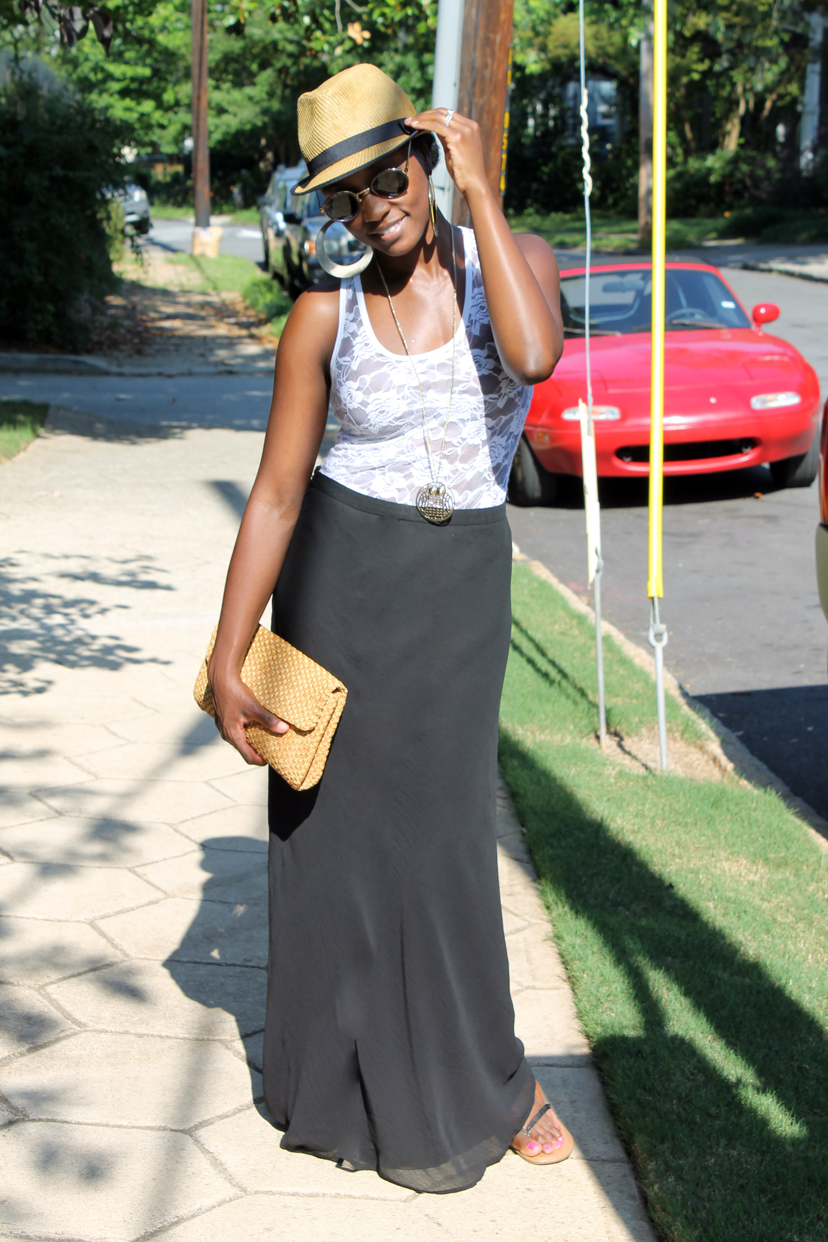 Color Story Sheer Shirt, Urban Outfitters Maxi Skirt & Straw Fedora, Boutique Earrings, Vintage Sunnies, Banana Republic Sandals, MStyle Lab Owl Necklace, Thrifted Straw Clutch