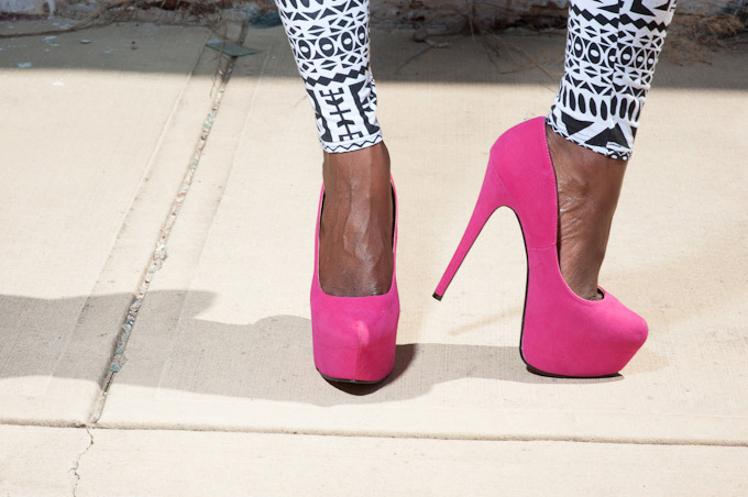 Victoria’s Secret Crop Top, Thever Shop Leggings, LoudLook Heels, Boutique Bracelet