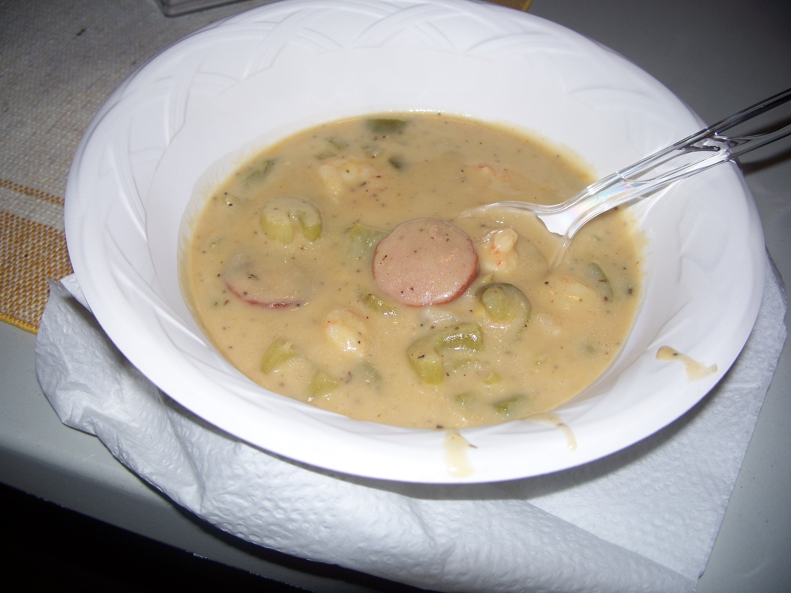 Homemade soup: Shrimp and Sausage Bisque. Full of flavor and absolutely yummy on a crisp night.